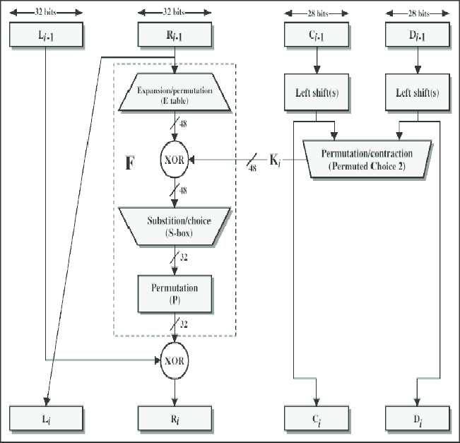 - Permutation (P-box): The 32-bit output from the S-boxes is subjected to a fixed permutation (P-box) step, which rearranges the bits according to a pre-defined permutation table. This step further confuses the data.