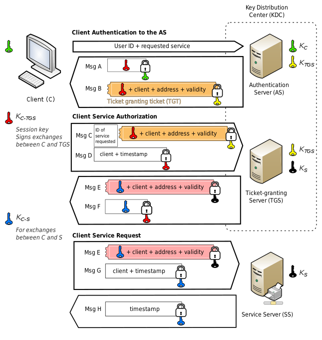 - Renewal and Expiration: The TGT and service tickets have a limited validity period. The client can request TGT renewal from the KDC to extend the session duration, or request a new TGT after the current one expires. This helps to maintain the security of the system by limiting the lifespan of tickets and session keys.