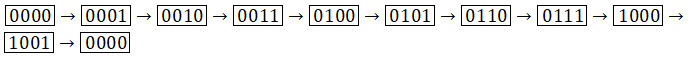 - The count starts with binary 0 and increments by 1 with each count pulse input.