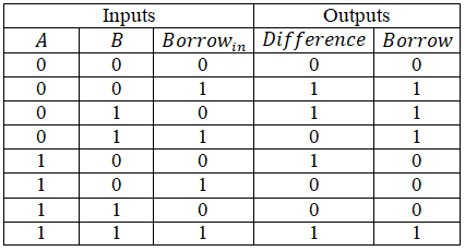 The truth table for a 1-bit comparator is given below :