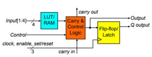 - It contains an LUT, associated logic, and a flip-flop.