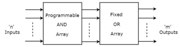 PAL is a programmable logic device that has Programmable AND array & fixed OR array. The advantage of PAL is that we can generate only the required product terms of Boolean function instead of generating all the min terms by using programmable AND gates. The block diagram of PAL is shown in the following figure.