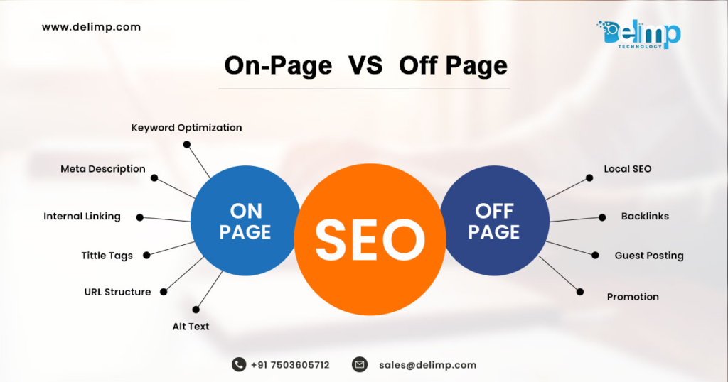 On-page SEO and off-page SEO are two key components of search engine optimization (SEO), which is the practice of optimizing a website to improve its search engine rankings and visibility in search engine results pages (SERPs). Here’s an overview of each: