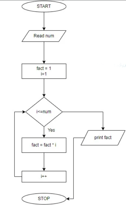 (b) Draw the flowchart to find the factorial of a number given by